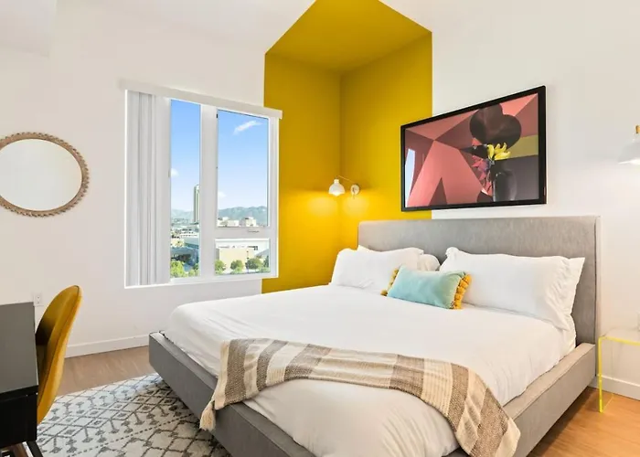 Diese Apartments liegt im Stadtviertel Little Tokyo. Die U-Bahn-Station Civic Center/Grand Park ist in rund 800 Meter Entfernung von dieser Unterkunft, und Koyasan Beikoku Betsuin of Los Angeles ist auch ziemlich nah an der Unterkunft. Rathaus ist Fall einen Besuch wert und befindet sich circa 8 Gehminuten von diesem Apartment entfernt.